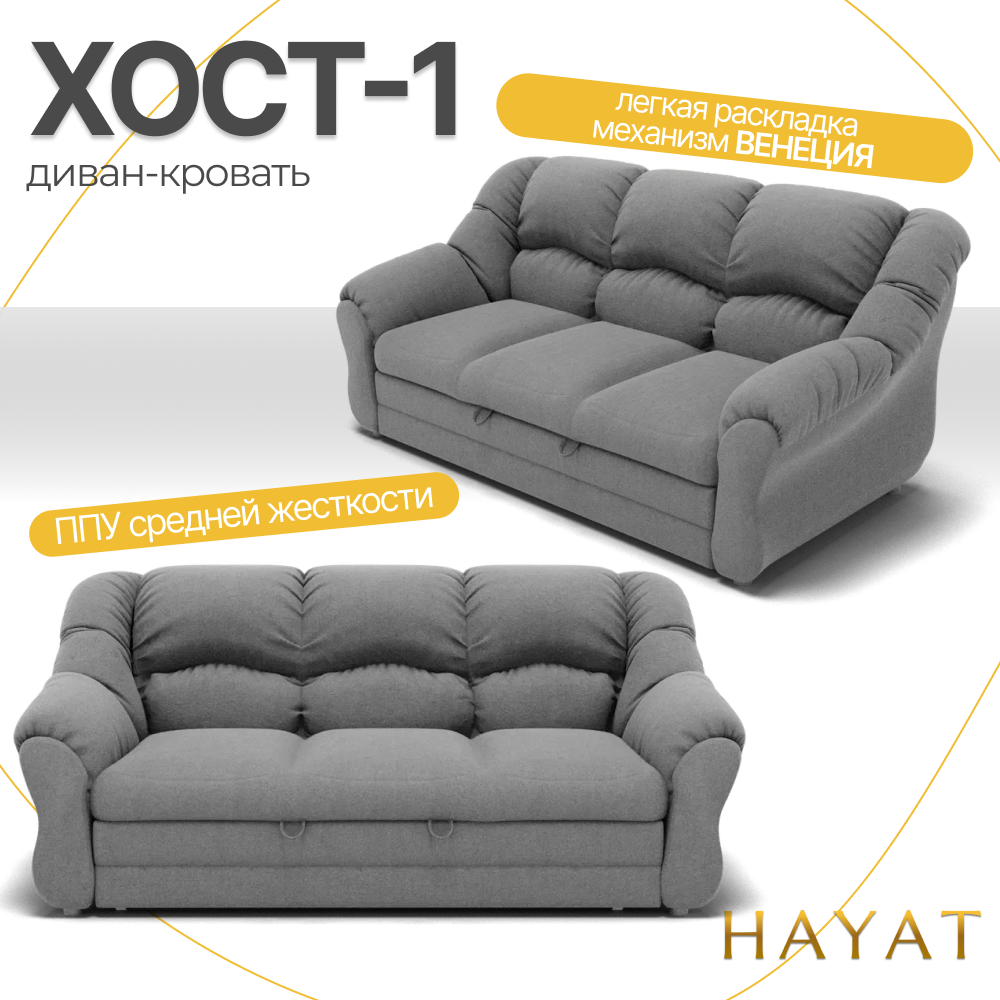 Диван-кровать Хост-1 имеет мягкие подлокотники, которые добавляют уюта и комфорта при использовании. Цвет дивана - серый, что позволяет ему гармонично вписаться в любой интерьер.