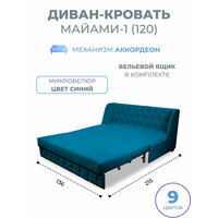 Диван кровать прямой раскладной с бельевым ящиком Майами-1 (120) механизм аккордеон велюр темно-синий Grand Family: сравнение цен, характеристики, фото, актуальное наличие и цены.