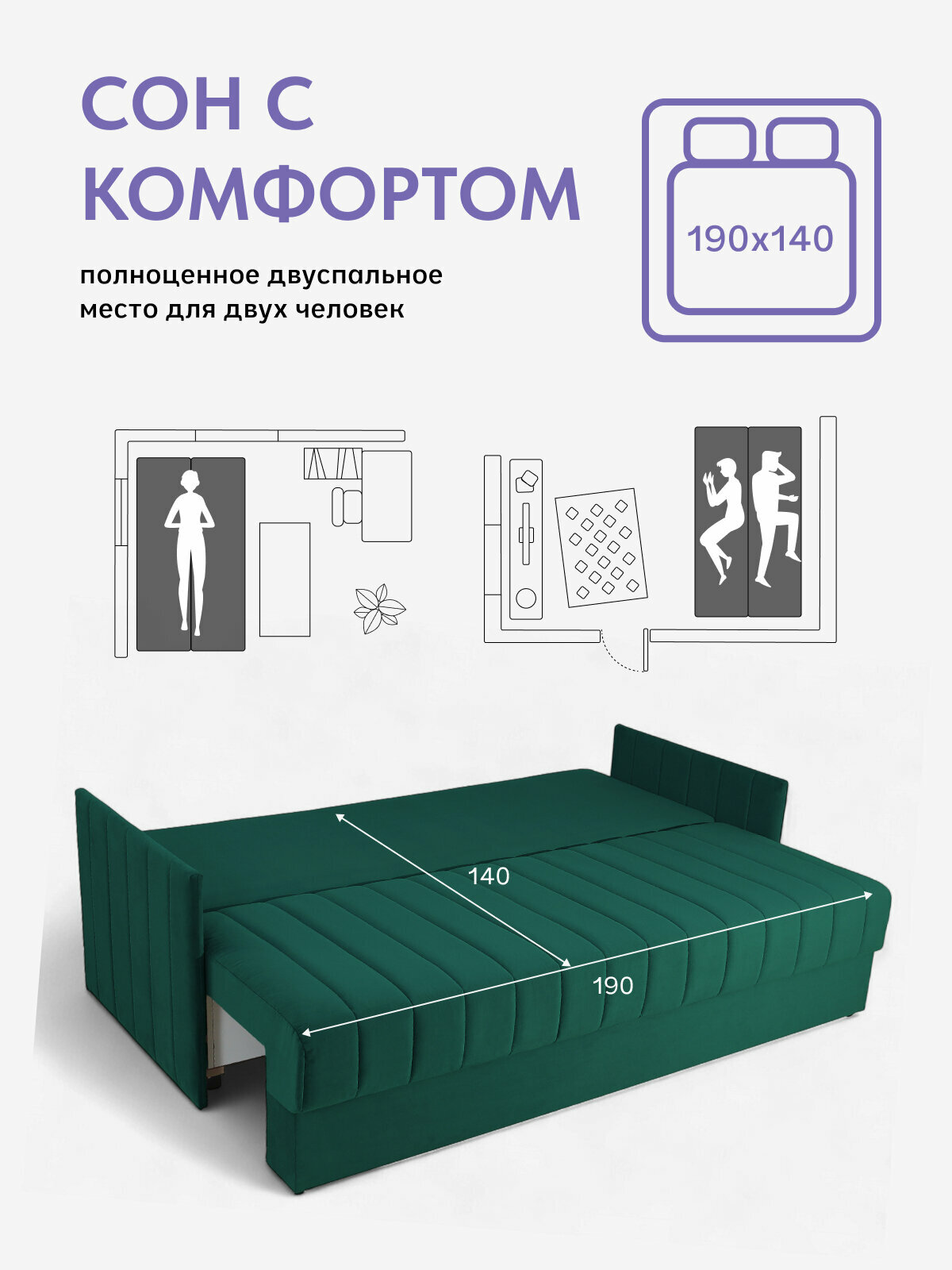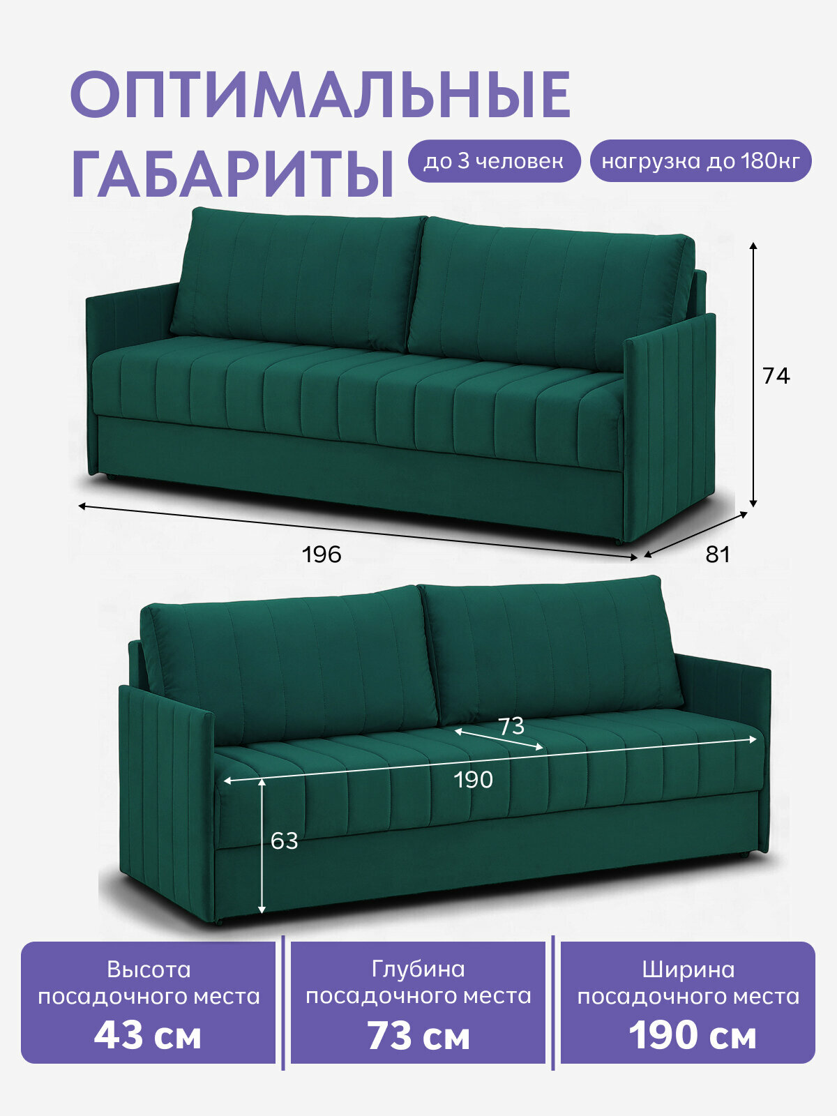 Диван-кровать «Макао», еврокнижка196х74х81, зеленый велюр, Divan24: сравнение цен, характеристики, фото, актуальное наличие и цены.