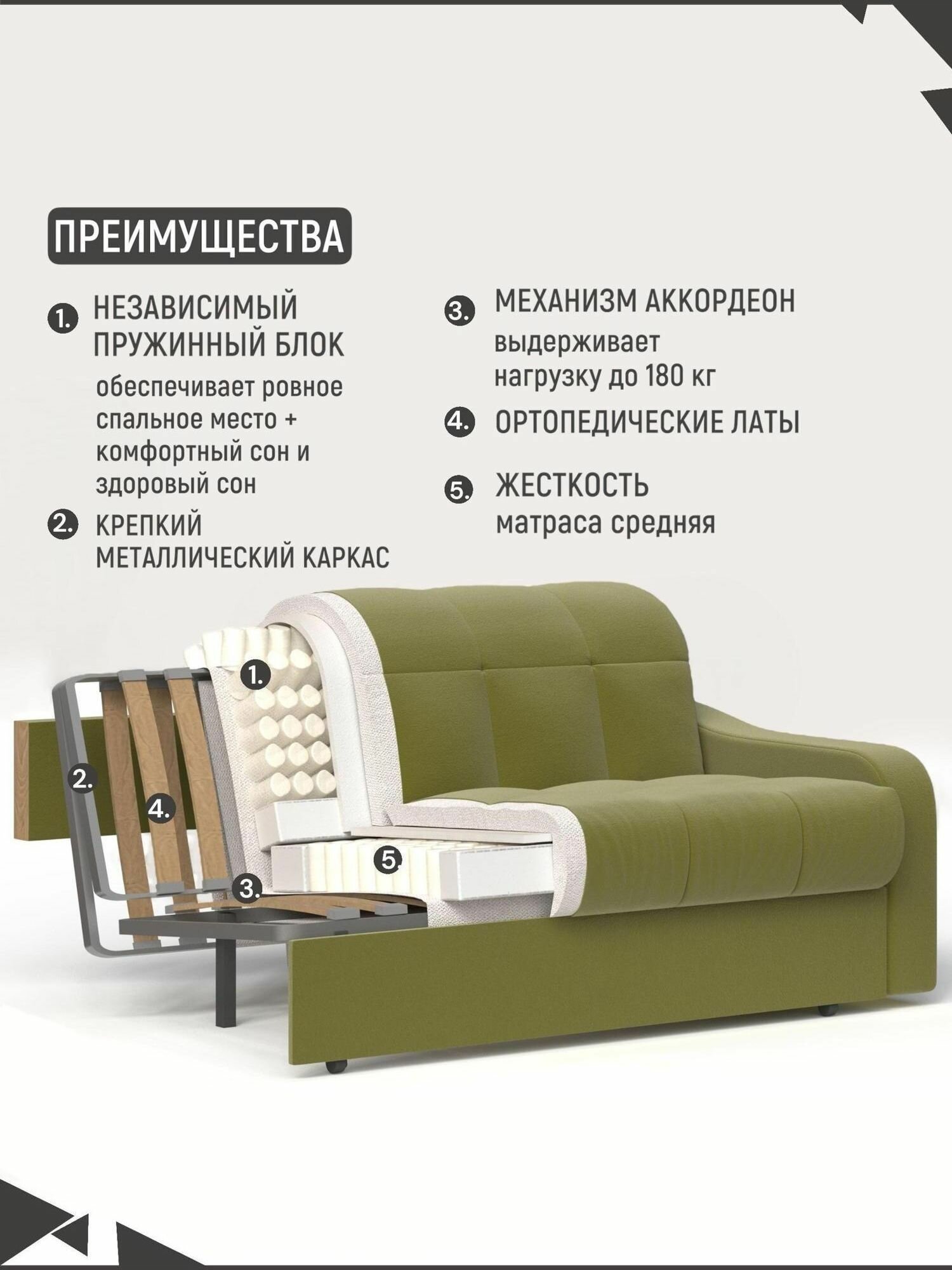 Диван кровать Manons Maison Муррен, раскладной механизм Аккордеон, Велюр Оливковый, 154х100х95 см: сравнение цен, характеристики, фото, актуальное наличие и цены.