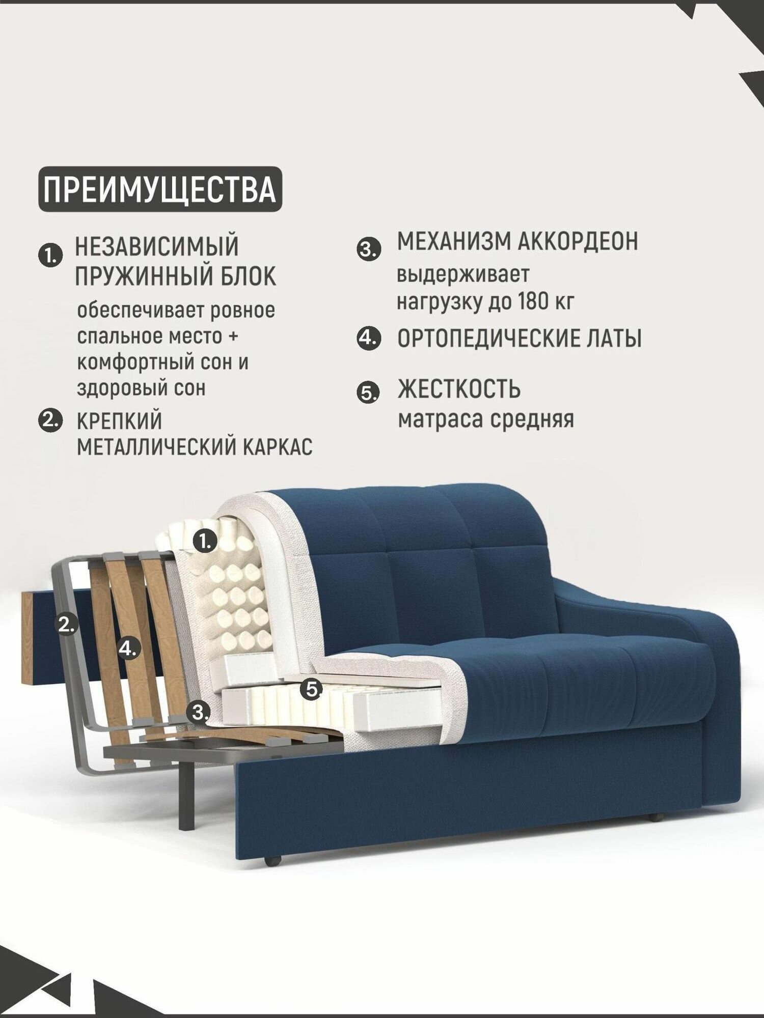 Диван кровать Manons Maison Муррен, раскладной механизм Аккордеон, Велюр Синий, 214х100х95 см: сравнение цен, характеристики, фото, актуальное наличие и цены.