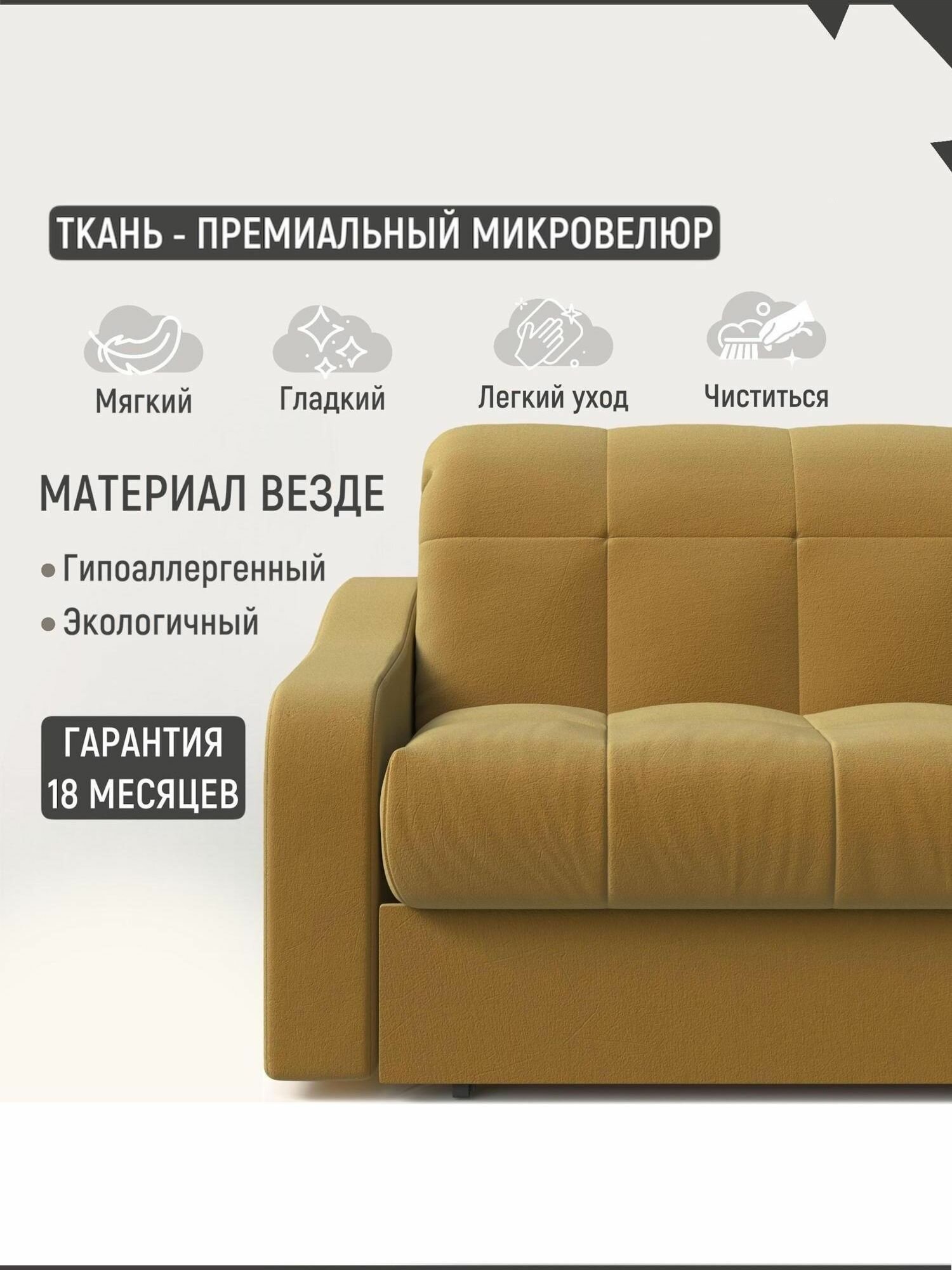 Диван кровать Manons Maison Муррен, раскладной механизм Аккордеон, Велюр Желтый, 174х100х95 см: сравнение цен, характеристики, фото, актуальное наличие и цены.