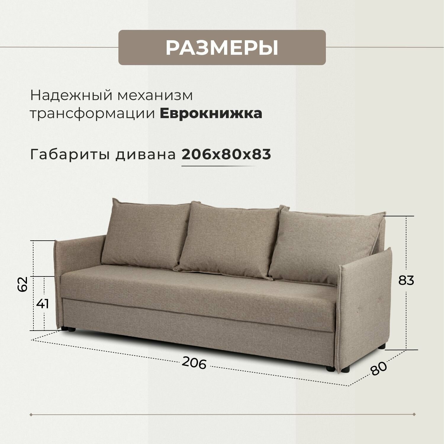 Этот раскладной диван легко трансформируется из дивана в кровать, обеспечивая комфортное спальное место для взрослых и детей. Благодаря своим универсальным размерам, он подходит как для больших, так и для маленьких помещений, будь то гостиная, спальня или даже кухня.