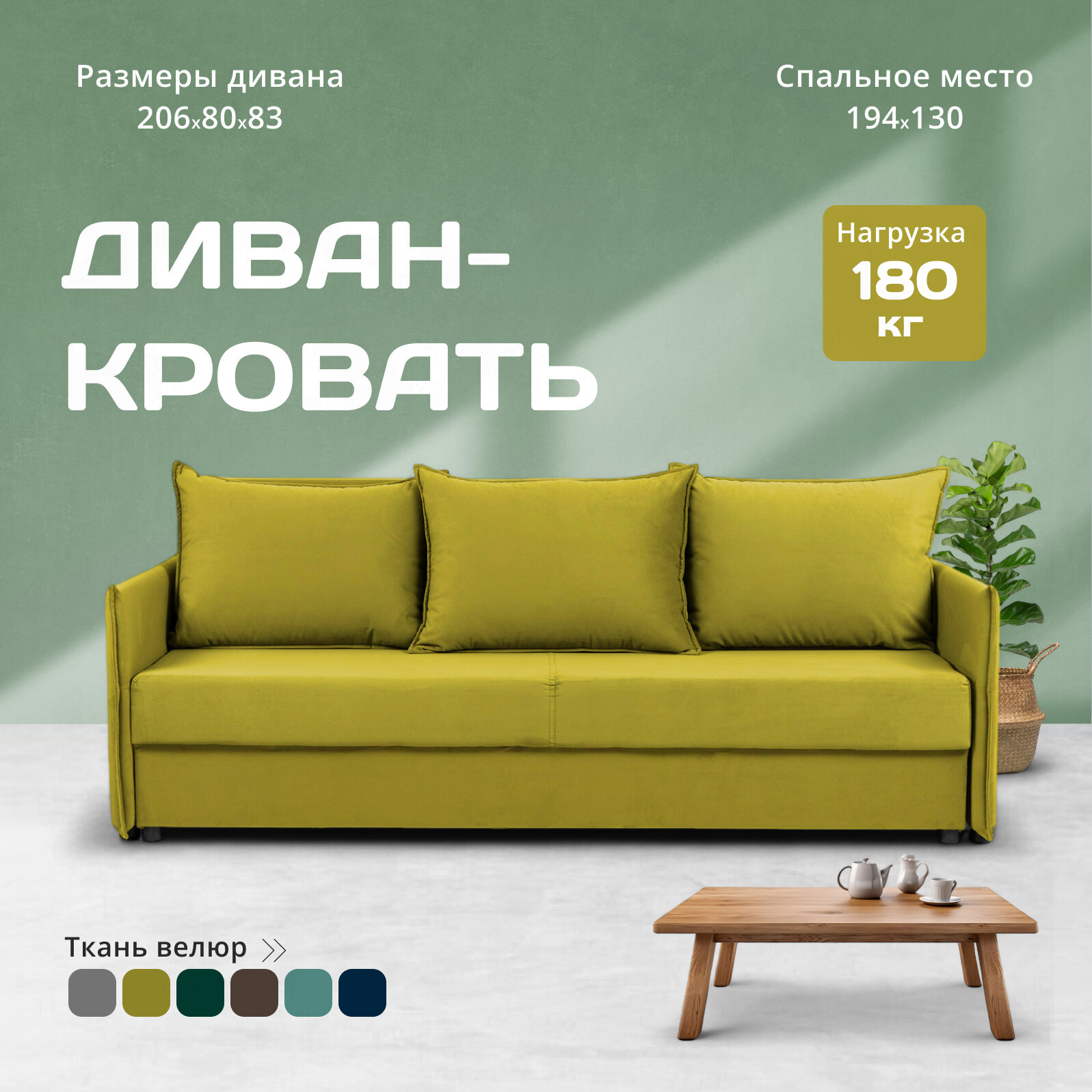 Этот диван — идеальное решение для вашего дома. Благодаря своему стильному дизайну и функциональности он подходит для разных помещений: гостиной, спальни, детской комнаты или офиса. С его помощью вы сможете создать уютные зоны отдыха в любой части вашего жилища. Большой размер дивана позволяет разместить его даже в просторных залах или больших комнатах. Он также отлично впишется в интерьер дачи или офиса. Этот диван может стать идеальным местом для отдыха семьи или друзей, а также дополнительным спальным местом для гостей. Мягкое сиденье и удобные подлокотники обеспечивают комфорт во время использования. Диван-кровать изготовлен из износостойкой и антивандальной ткани велюра, что делает его прочным и долговечным. Стильный дизайн позволяет использовать его в любом интерьере: от современного до классического или лофт.