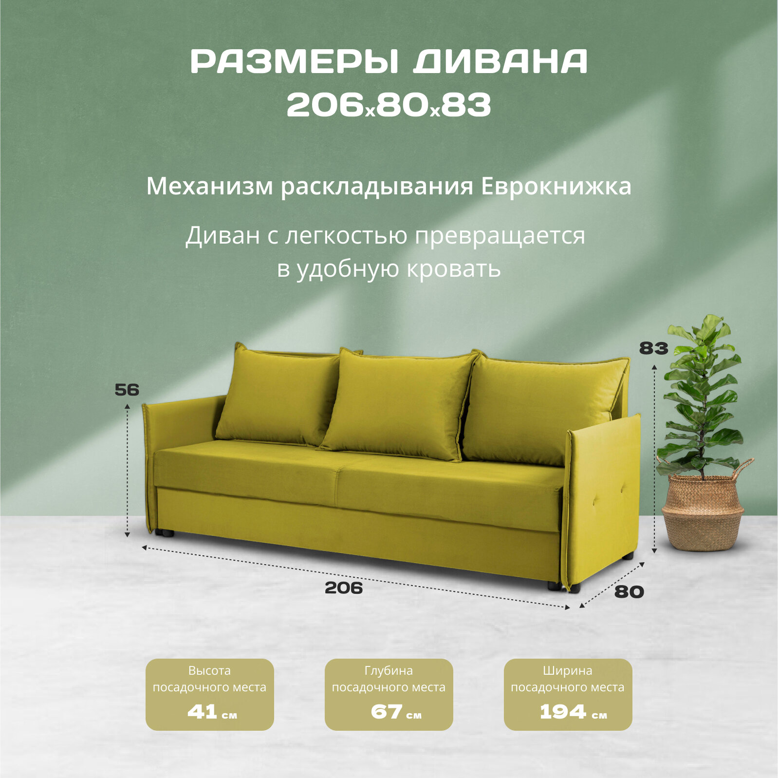 Вы также можете разместить его на балконе, лоджии или в офисе, чтобы создать уютную зону отдыха или ресепшен для посетителей. Благодаря своей конструкции и удобному механизму трансформации — еврокнижка, диван может использоваться как диван-кровать, что делает его отличным выбором для небольших кабинетов или детских комнат.
