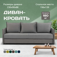 Этот диван — идеальное решение для вашего дома. Благодаря своему стильному дизайну и функциональности он подходит для разных помещений: гостиной, спальни, детской комнаты или офиса. С его помощью вы сможете создать уютные зоны отдыха в любой части вашего жилища. Большой размер дивана позволяет разместить его даже в просторных залах или больших комнатах. Он также отлично впишется в интерьер дачи или офиса. Этот диван может стать идеальным местом для отдыха семьи или друзей, а также дополнительным спальным местом для гостей. Мягкий сиденье и удобные подлокотники обеспечивают комфорт во время использования. Диван-кровать изготовлен из износостойкой и антивандальной ткани велюра, что делает его прочным и долговечным. Стильный дизайн позволяет использовать его в любом интерьере: от современного до классического или лофт.