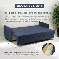 Прямой диван-кровать "Марсель" - это универсальная мебель, которая станет прекрасным дополнением интерьера вашего дома. Благодаря своему стильному дизайну и функциональности, этот диван подходит для разных помещений: от гостиной и спальни до детской комнаты и офиса. С его помощью вы сможете создать уютные зоны отдыха в разных частях вашего дома. Большой размер дивана позволяет разместить его в просторных залах или больших комнатах. Так же диванчик отлично впишется в интерьер дачи или офиса. Он может быть идеальным местом для отдыха семьи или друзей, а также дополнительным спальным местом для гостей. Кроме того, диван обладает мягким сиденьем и удобными подлокотниками, что обеспечивает комфорт во время использования. Диван кровать представлен в износостойкой ткане рогожка. Стильный дизайн делает этот диван прекрасным выбором для любого интерьера. Он подойдет как для современного дизайна, так и для классического или лофт стилей. Вы также можете разместить его на балконе, лоджии или в офисе, чтобы создать уютную зону отдыха или ресепшен для посетителей. Диван изготовлен из высококачественных материалов, включая фанеру и прочные ножки. Это гарантирует долгий срок службы мебели и ее надежность. Благодаря своей конструкции и удобному механизму трансформации - еврокнижка, диван также может использоваться как диван кровать, что делает его отличным выбором для небольших кабинетов или детских комнат. Размеры в собранном видк (ШхГхВ) 206х80х83 см. Спальное место: (ШхГ) 130х194 см. Конструкция дивана с большим запасом прочности и выдерживает не менее 100 кг на посадочное одно место. Также диван имеет просторный ящик для хранения белья, его размеры (ДхШхВ) 195х54х26,5 см.