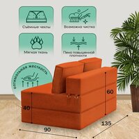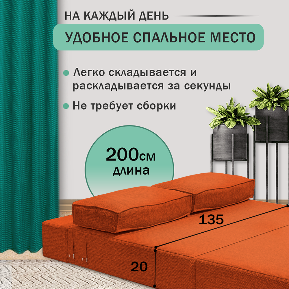 Купить Диван, кровать Mini, Ramelka Mattress, 135 х 200см, оранжевый, бескаркасный, еврокнижка, шенилл с доставкой по всей России.