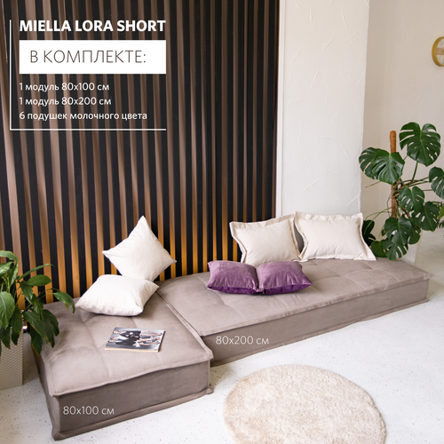 Купить Диван кровать модульный бескаркасный MIELLA Lora Short, серо-бежевый велюр Люкс, подушки молочного цвета 6 шт+ 1 в подарок с доставкой по всей России. Диван кровать модульный бескаркасный MIELLA Lora Short, серо-бежевый велюр Люкс, подушки молочного цвета 6 шт+ 1 в подарок: сравнение цен, характеристики, фото, актуальное наличие и цены.