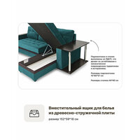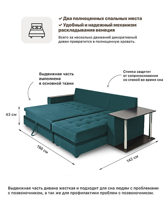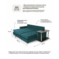Купить Угловой Диван — кровать со столиком на независимом пружинном блоке Инвуд 2 универсальный угол, двухместный, Велюр бирюзовый с доставкой по всей России.