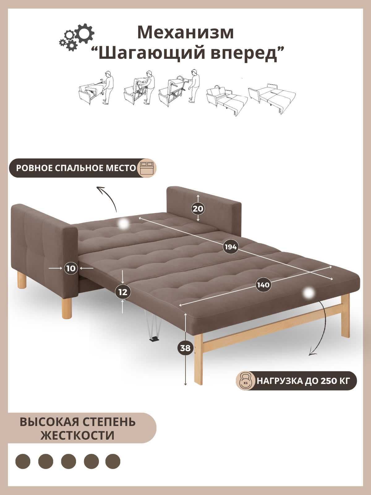 Купить Диван-кровать Остин, прямой, 160х80х81 , спальное 140*194, велюр коричневый Зара с доставкой по всей России.