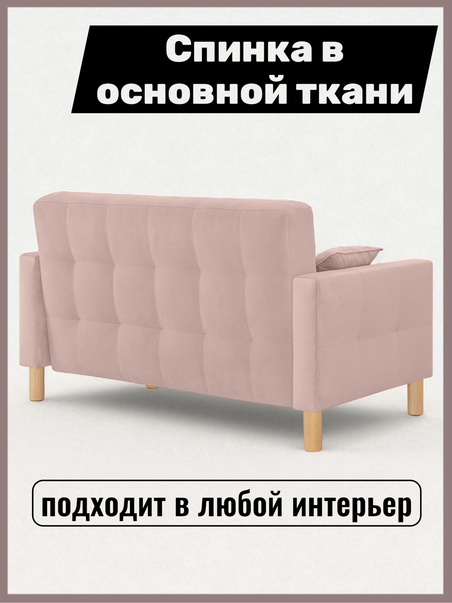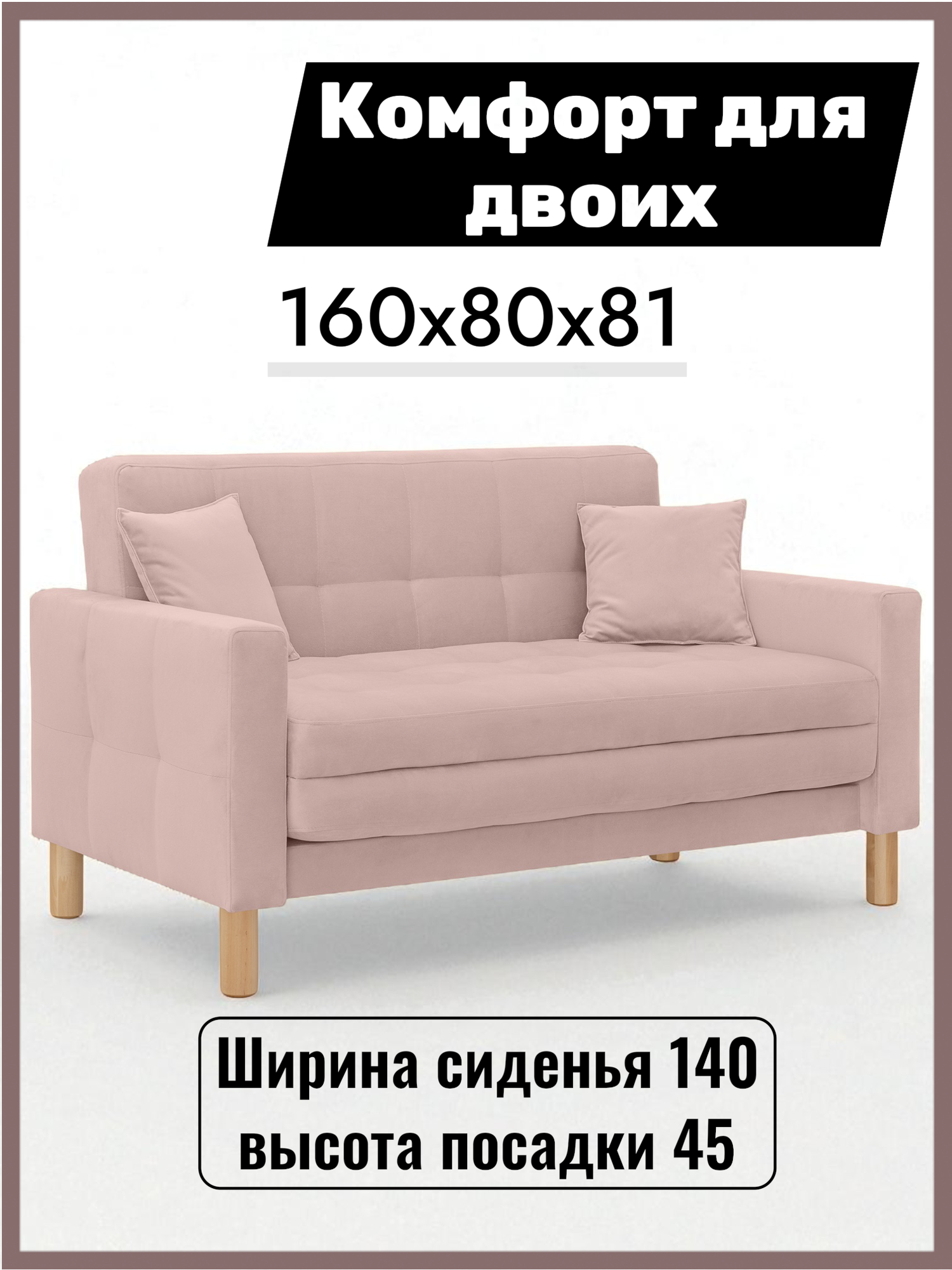 Диван малогабаритный раскладной двухместный 140 см, что позволяет ему занимать минимальное пространство в комнате. Раскладной диван-кровать приятен благодаря однотонному велюру и удобному матрасу.