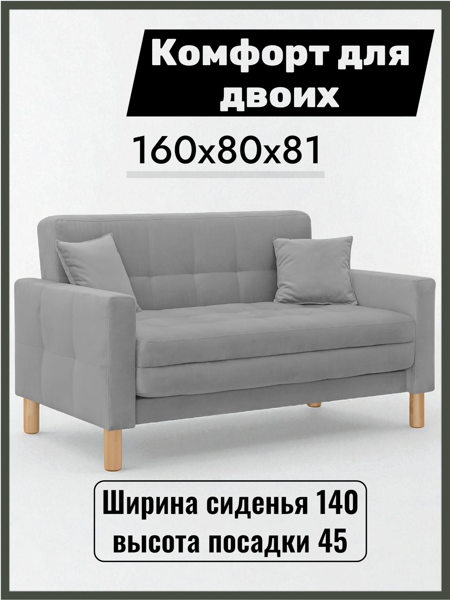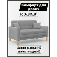 Диван малогабаритный раскладной двухместный 140 см, что позволяет ему занимать минимальное пространство в комнате. Раскладной диван-кровать приятен благодаря однотонному велюру и удобному матрасу.