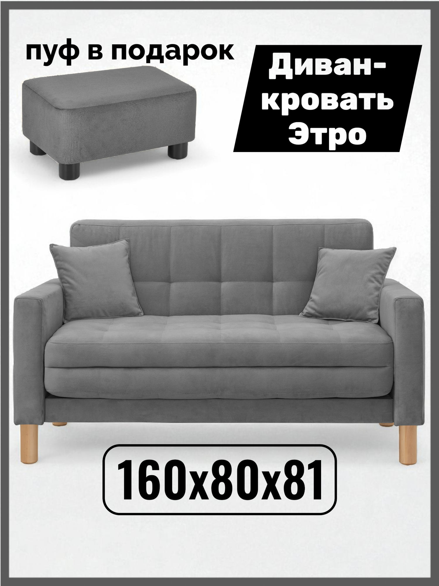 Купить Диван-кровать Остин, прямой, 160х80х81 , спальное 140*194, велюр темно-серый, Велутто 19 с доставкой по всей России.