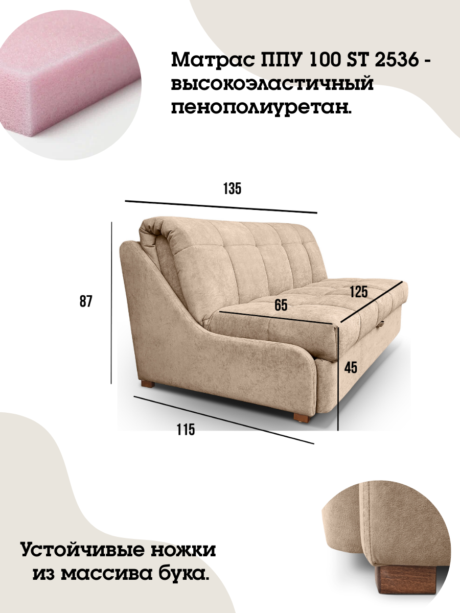 Диван кровать Пафос (бежевый) для отдыха и сна, механизм аккордеон, без подлокотников, велюр, 125х200 см: сравнение цен, характеристики, фото, актуальное наличие и цены.