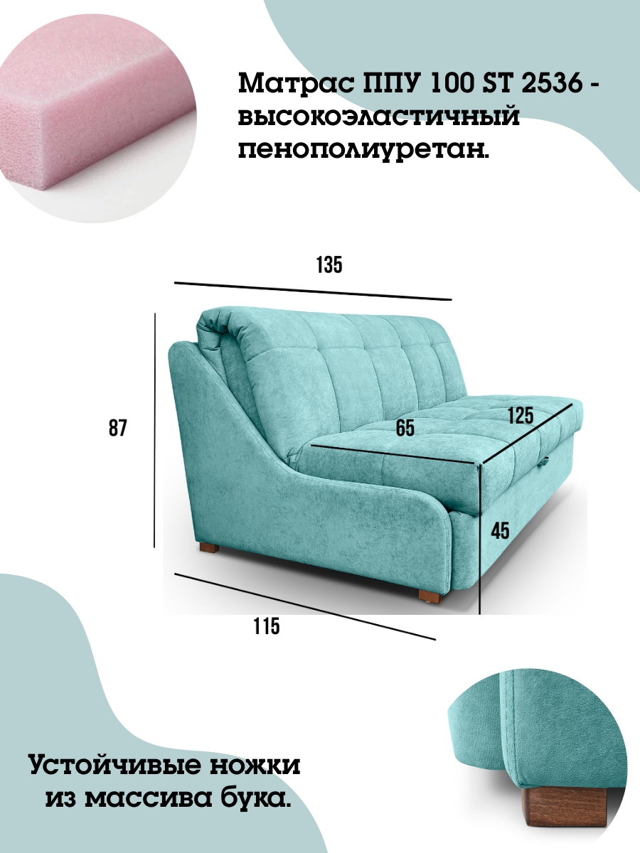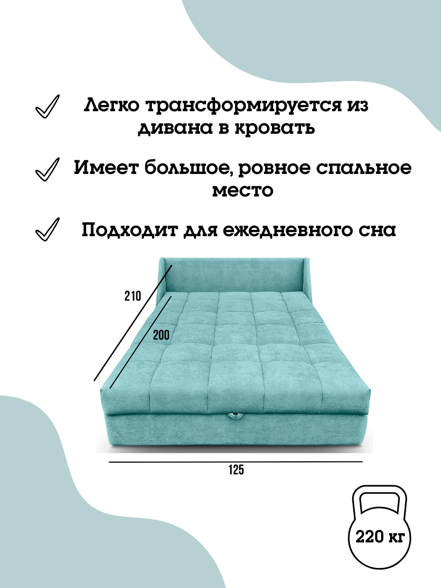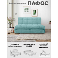 Диван кровать Пафос (бирюзовый) для отдыха и сна, механизм аккордеон, без подлокотников, велюр, 125х200 см: сравнение цен, характеристики, фото, актуальное наличие и цены.