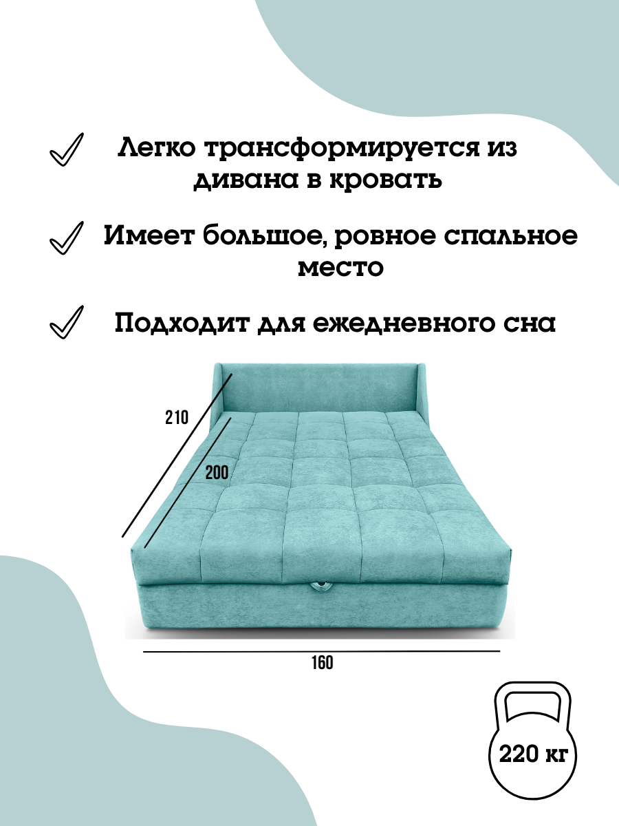 Диван кровать Пафос (бирюзовый) для отдыха и сна, механизм аккордеон, без подлокотников, велюр, 160х200 см: сравнение цен, характеристики, фото, актуальное наличие и цены.