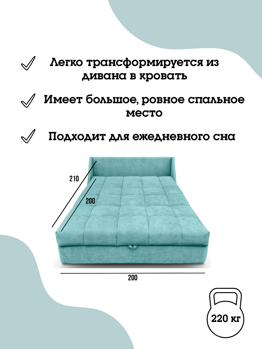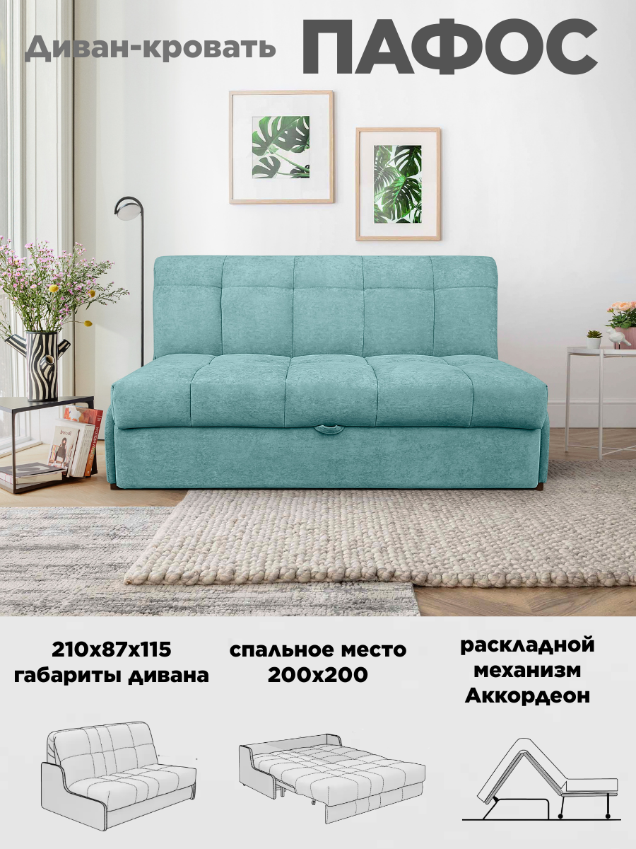 Диван кровать Пафос (бирюзовый) для отдыха и сна, механизм аккордеон, без подлокотников, велюр, 200х200 см: сравнение цен, характеристики, фото, актуальное наличие и цены.