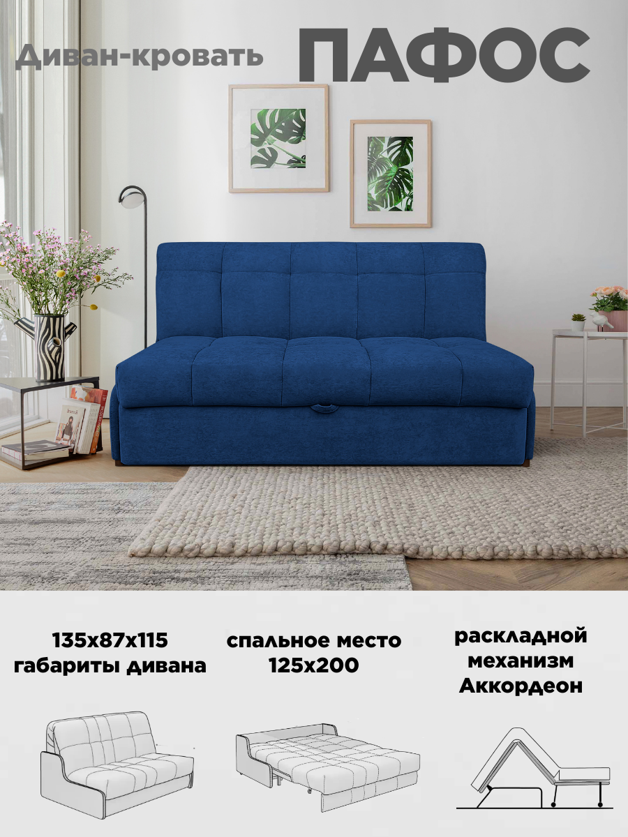 Диван кровать Пафос (синий) для отдыха и сна, механизм аккордеон, без подлокотников, велюр, 125х200см: сравнение цен, характеристики, фото, актуальное наличие и цены.