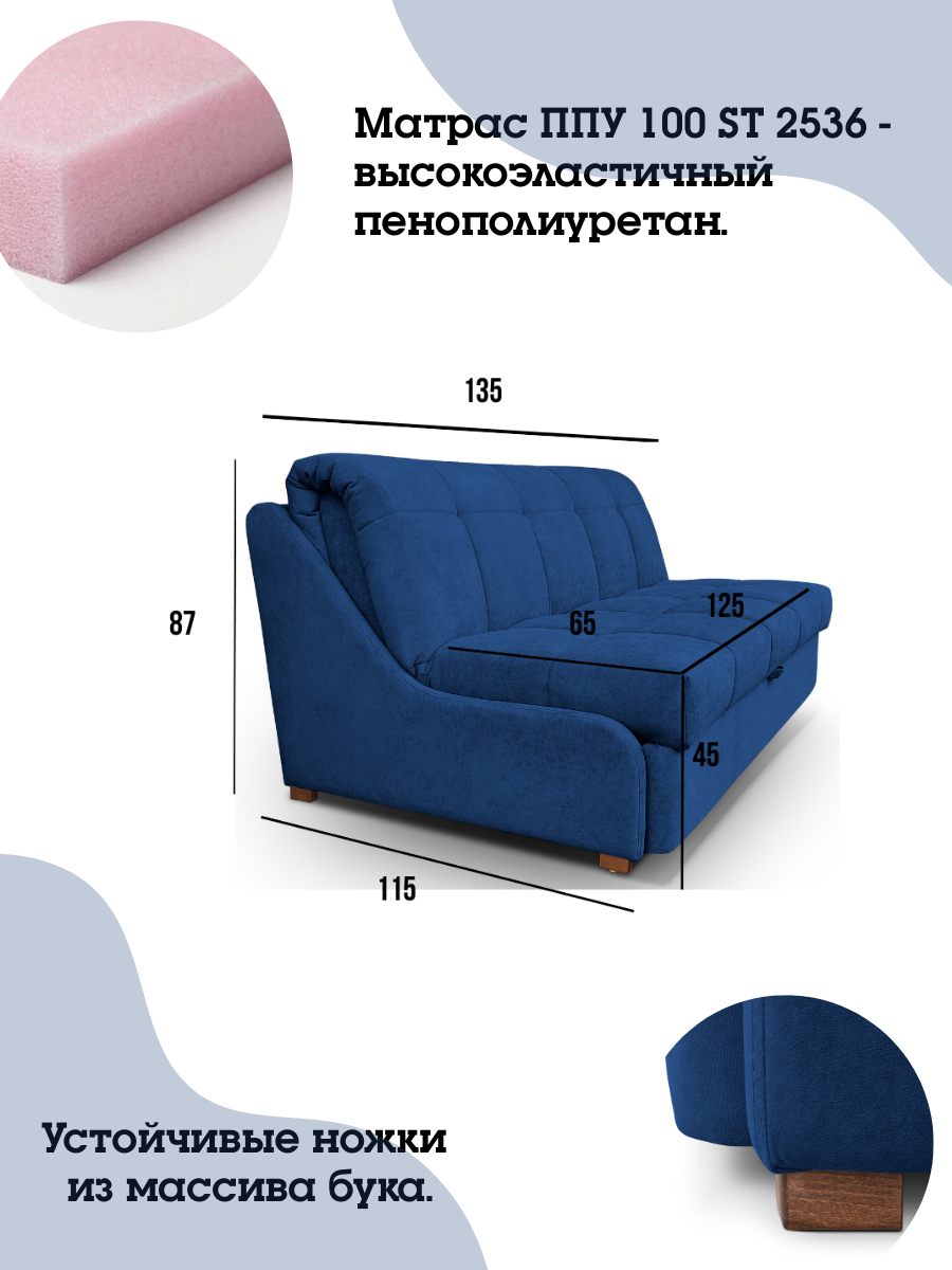 Купить Диван кровать Пафос (синий) для отдыха и сна, механизм аккордеон, без подлокотников, велюр, 125х200см с доставкой по всей России.