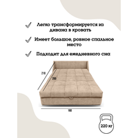 Диван кровать Пафос (бежевый) для отдыха и сна, механизм аккордеон, без подлокотников, велюр, 160х200 см