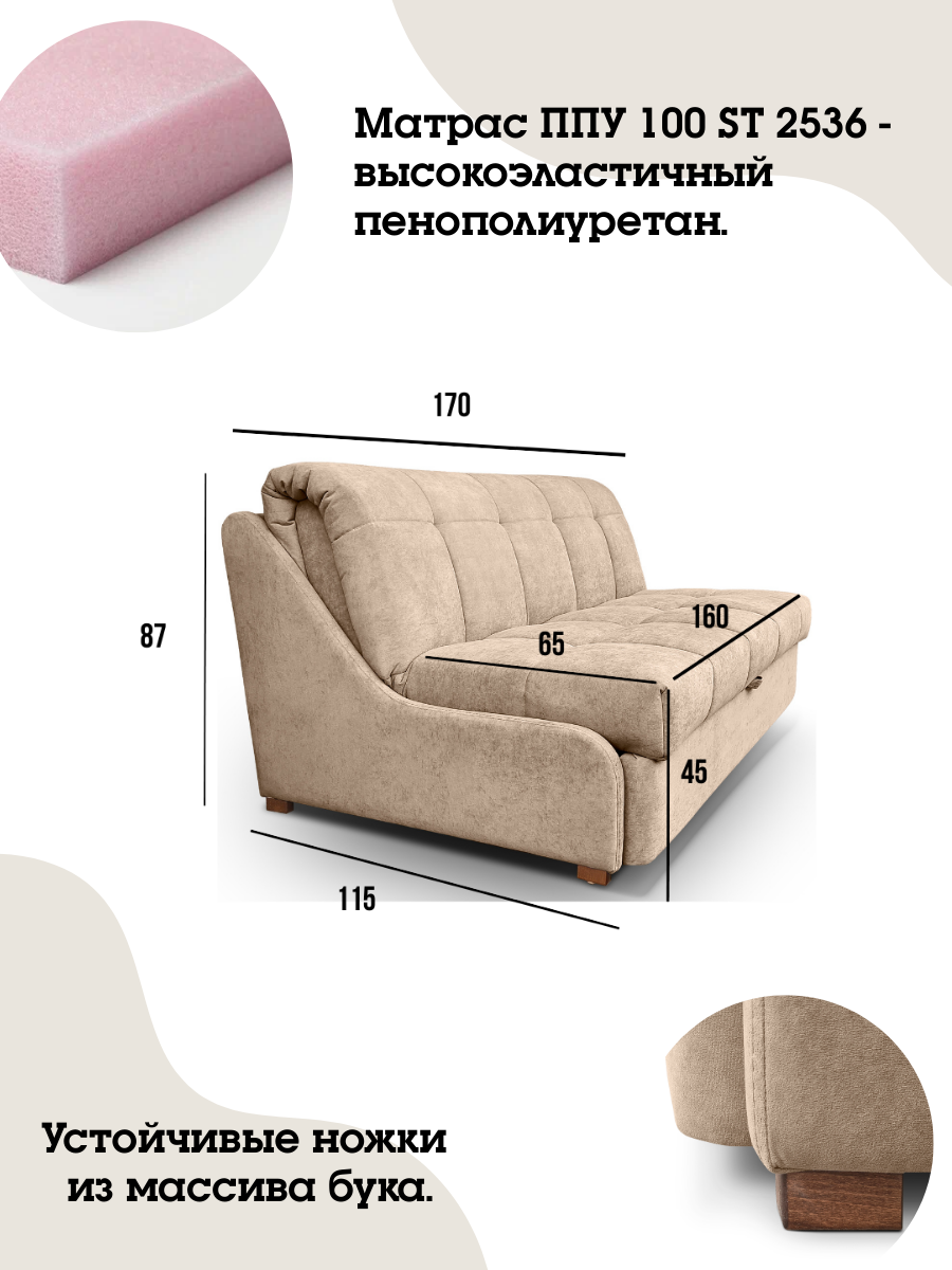 Диван кровать Пафос (бежевый) для отдыха и сна, механизм аккордеон, без подлокотников, велюр, 160х200 см: сравнение цен, характеристики, фото, актуальное наличие и цены.