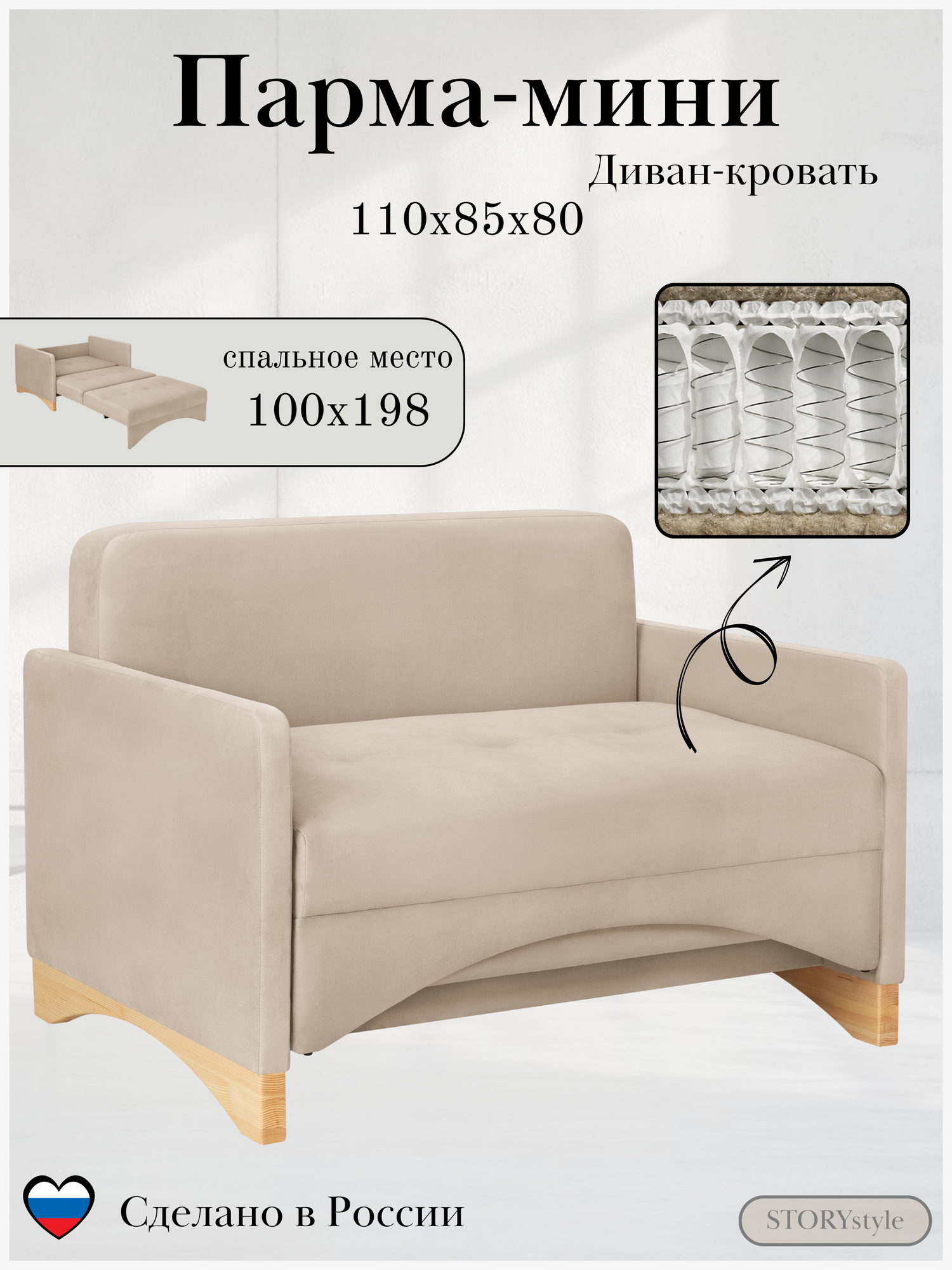 Купить Диван-кровать парма на пружинном блоке 110Х85Х80, Велутто 07, велюр бежевый с доставкой по всей России.