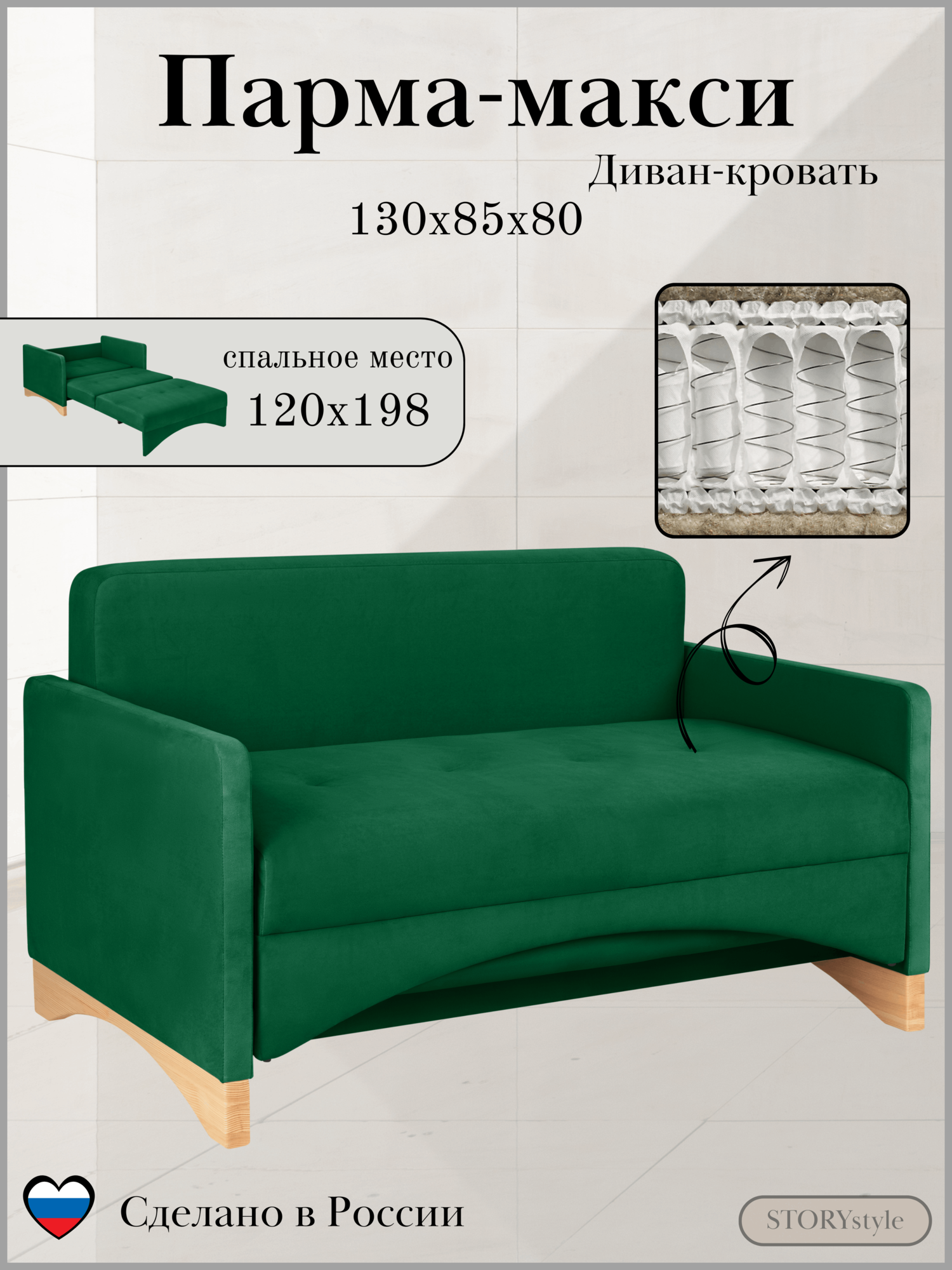 Диван-кровать ПАРМА на пружинном блоке 130Х85Х80, Велутто 33, велюр зеленый: сравнение цен, характеристики, фото, актуальное наличие и цены.