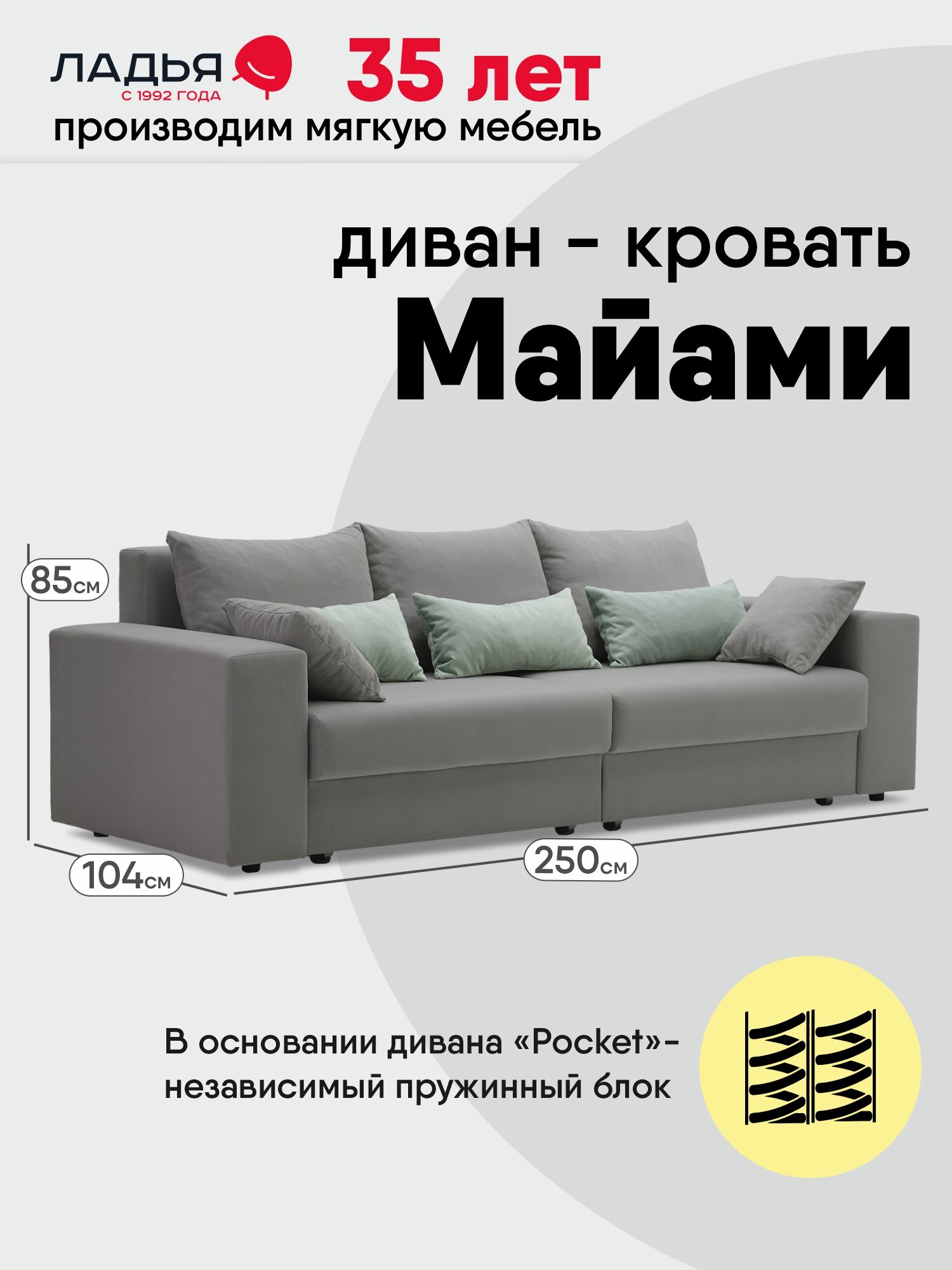 Диван-кровать прямой Майами размер: 250х104х85 см, спальное место: 200х156 см, Vivaldi 06 Вектор: сравнение цен, характеристики, фото, актуальное наличие и цены.