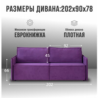 Купить Диван — кровать прямой в стиле лофт Виго 2, механизм еврокнижка, 202 х 90 х 78 см, Фиолетовый с доставкой по всей России.