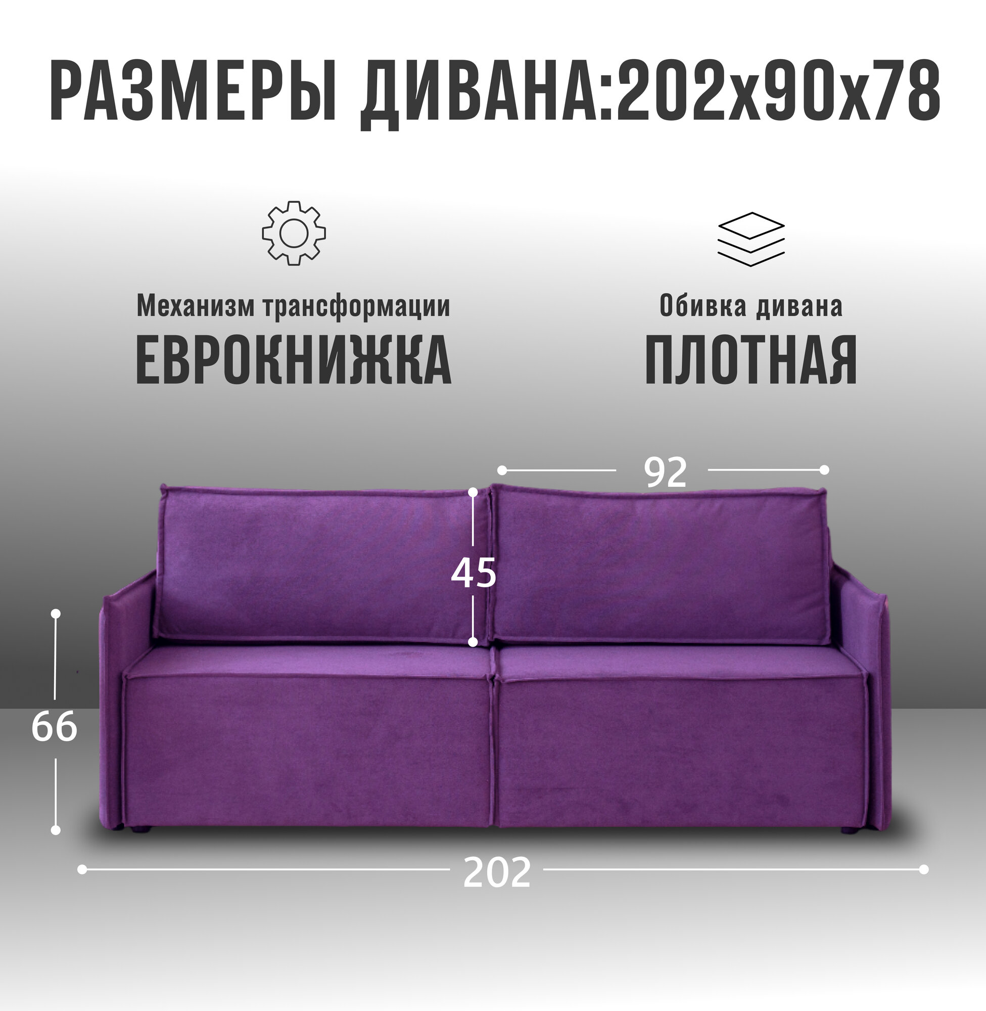 Диван — кровать прямой в стиле лофт Виго 2, механизм еврокнижка, 202 х 90 х 78 см, Фиолетовый: сравнение цен, характеристики, фото, актуальное наличие и цены.