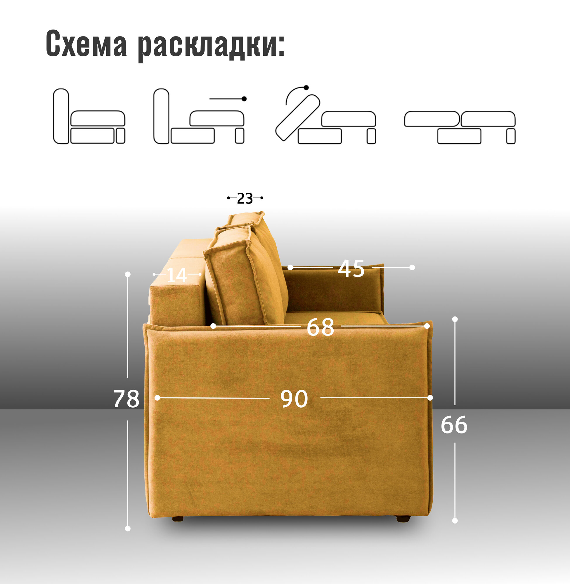 | Особенности | модульный, пружинный блок, раскладная конструкция, с подлокотниками, съемные подушки, ящик для белья |