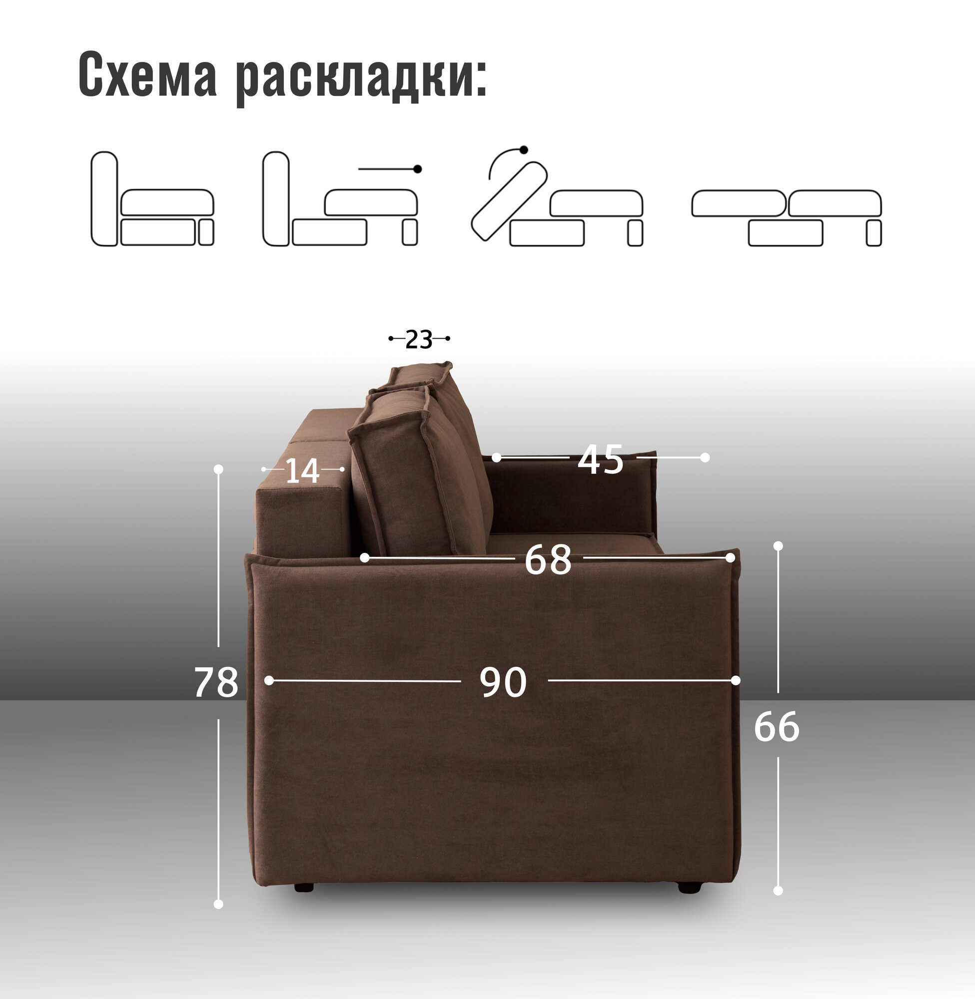 | Особенности | модульный, пружинный блок, раскладная конструкция, с подлокотниками, съемные подушки, ящик для белья |