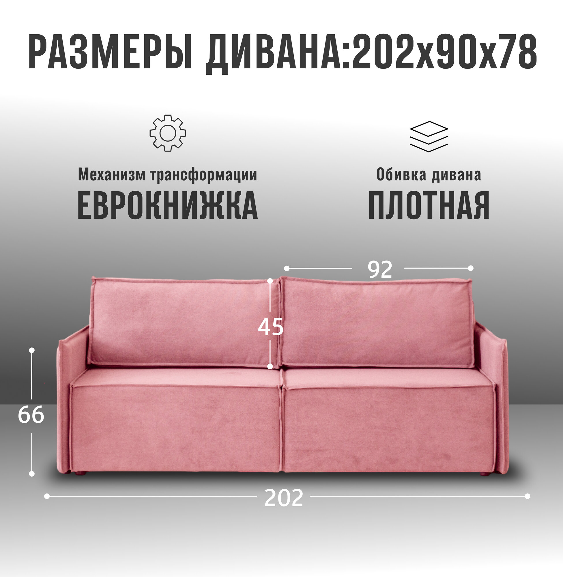 Диван — кровать прямой в стиле лофт Виго 2, механизм еврокнижка, 202 х 90 х 78 см, Розовый: сравнение цен, характеристики, фото, актуальное наличие и цены.