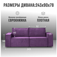 Купить Диван — кровать прямой в стиле лофт Виго, механизм еврокнижка, 243 х 90 х 78 см, Фиолетовый с доставкой по всей России.