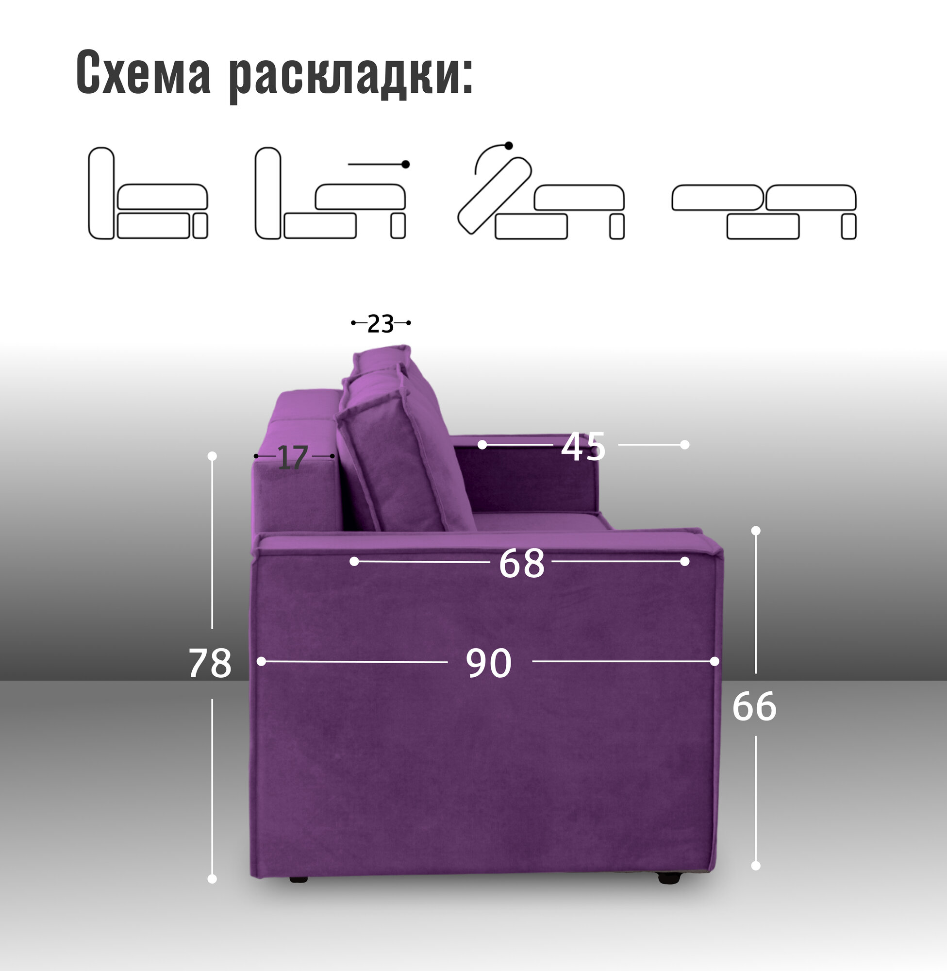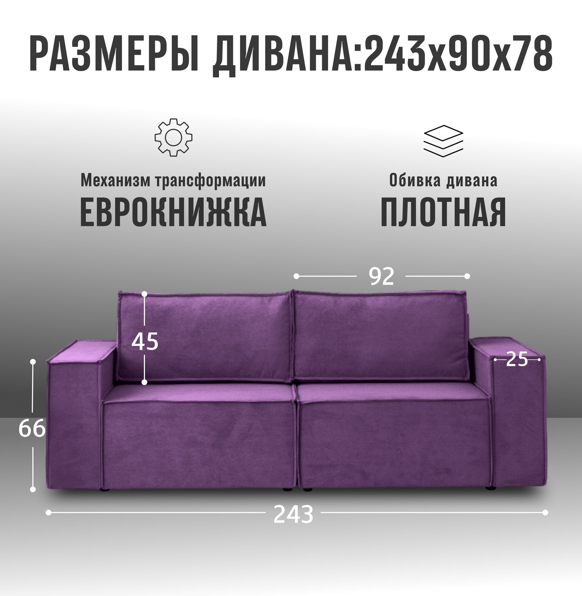 Диван — кровать прямой в стиле лофт Виго, механизм еврокнижка, 243 х 90 х 78 см, Фиолетовый: сравнение цен, характеристики, фото, актуальное наличие и цены.