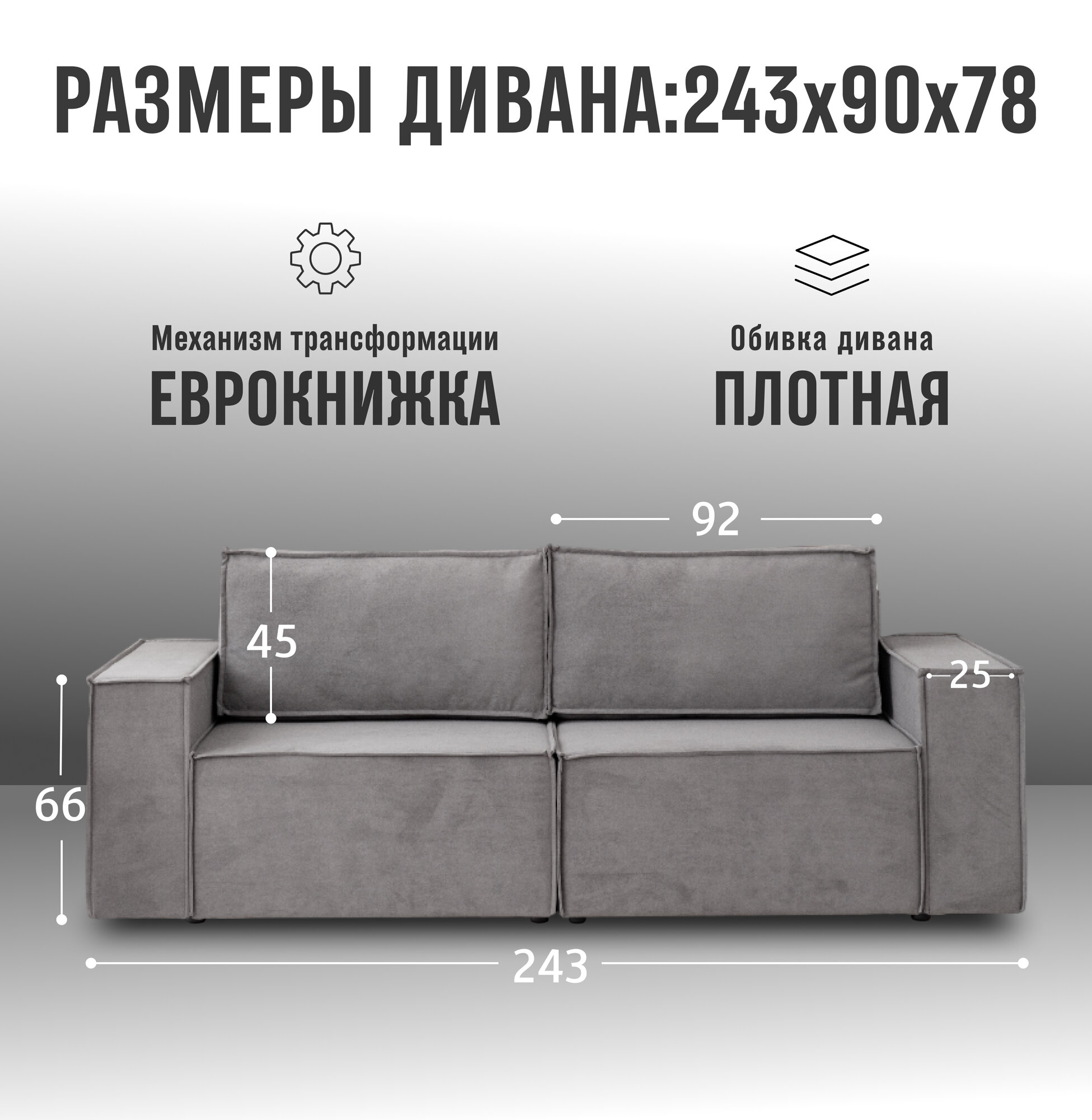 Диван-кровать прямой Виго с механизмом еврокнижка – это удобное и практичное мебельное решение для вашего дома. Его размеры составляют 243 х 90 х 78 см, что обеспечивает достаточно места для комфортного отдыха.