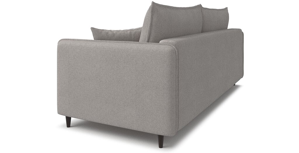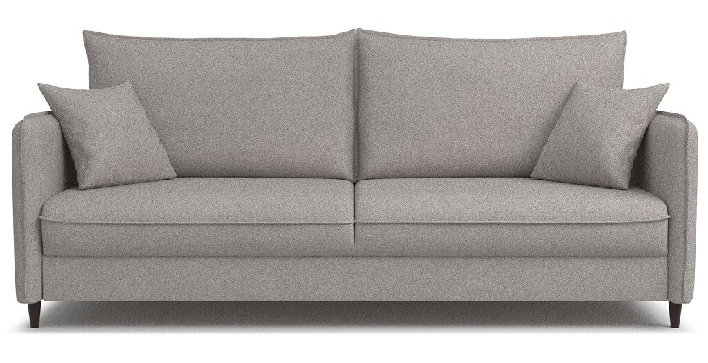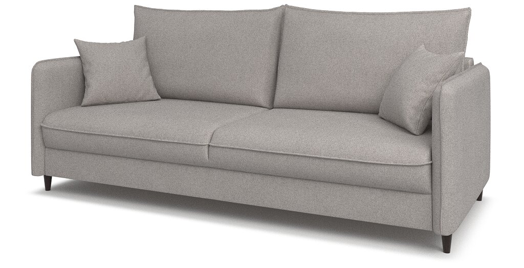 Диван-кровать «Фьорд» сочетает в себе функциональность и лаконичный внешний вид. В его дизайне присутствуют все основные элементы, свойственные скандинавскому стилю: тонкие подлокотники и мягкие подушки с отделкой модным «французским швом»; пара дополнительных миниатюрных подушек для украшения интерьера; декоративные складки в местах скругления подлокотника и сидения.