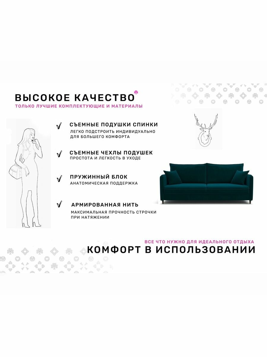Диван-кровать «Фьорд» сочетает в себе функциональность и лаконичный внешний вид. В его дизайне присутствуют все основные элементы, свойственные скандинавскому стилю: тонкие подлокотники и мягкие подушки с отделкой модным «французским швом»; пара дополнительных миниатюрных подушек для украшения интерьера; декоративные складки в местах скругления подлокотника и сидения.