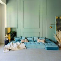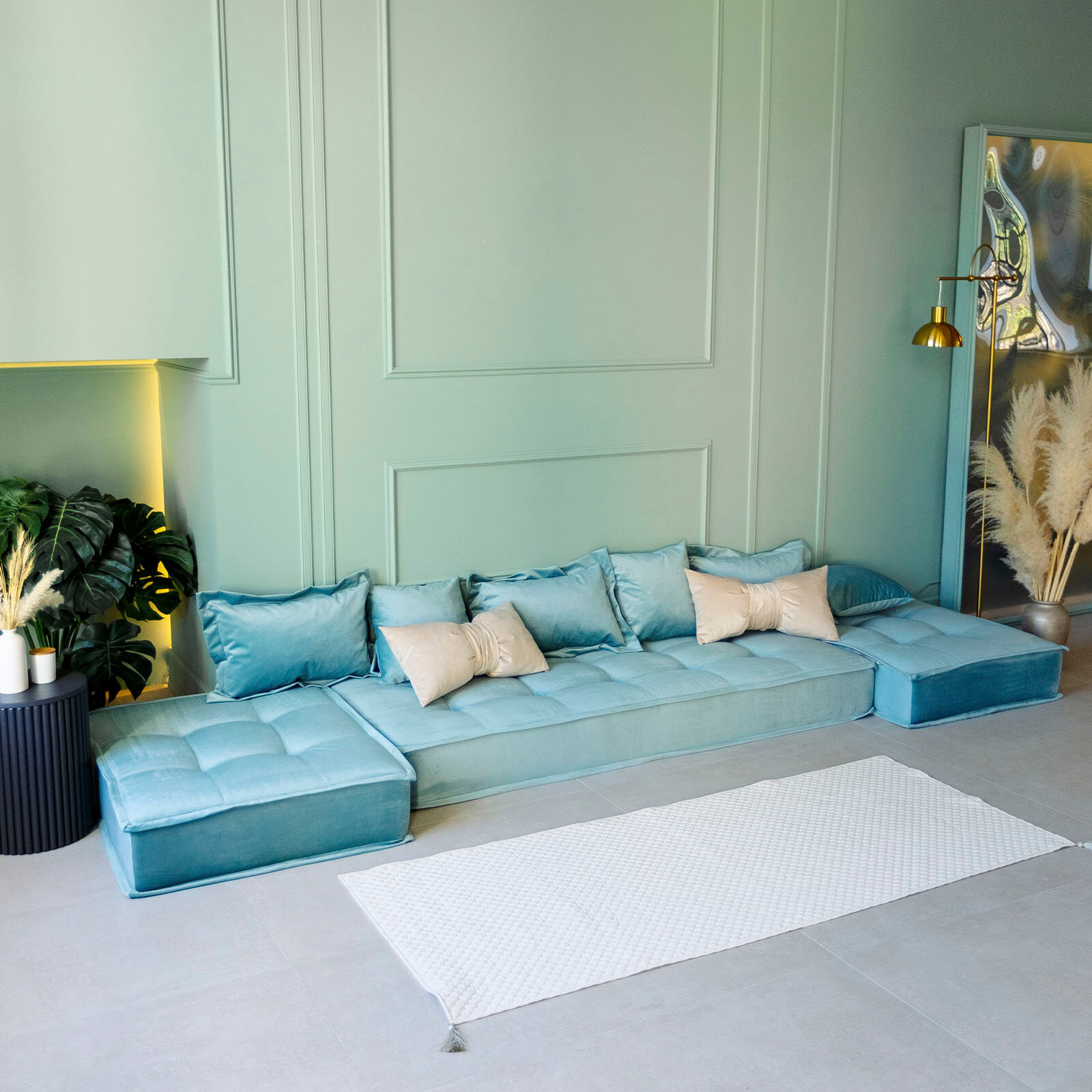 Купить Диван кровать раскладной бескаркасный модульный MIELLA Lora, светло-зеленый велюр светло-зеленые подушки с доставкой по всей России.