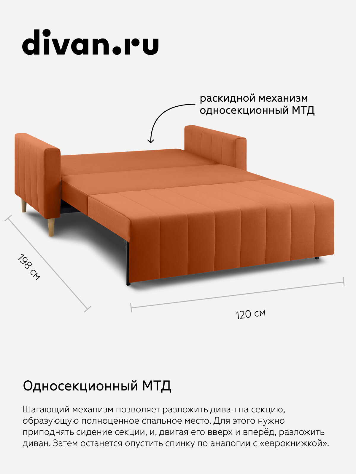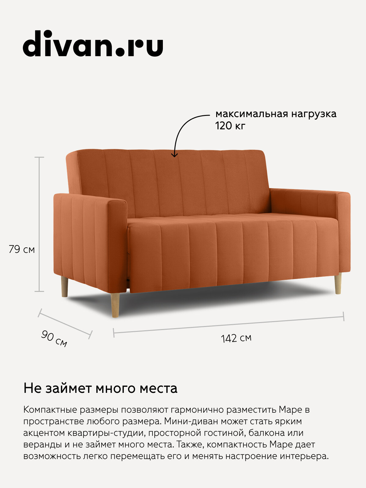 Диван-кровать раскладной Divan.ru Маре Мини Velvet Ginger 142х90х79 см, спальное место 198х120 см, оранжевый, велюр: сравнение цен, характеристики, фото, актуальное наличие и цены.