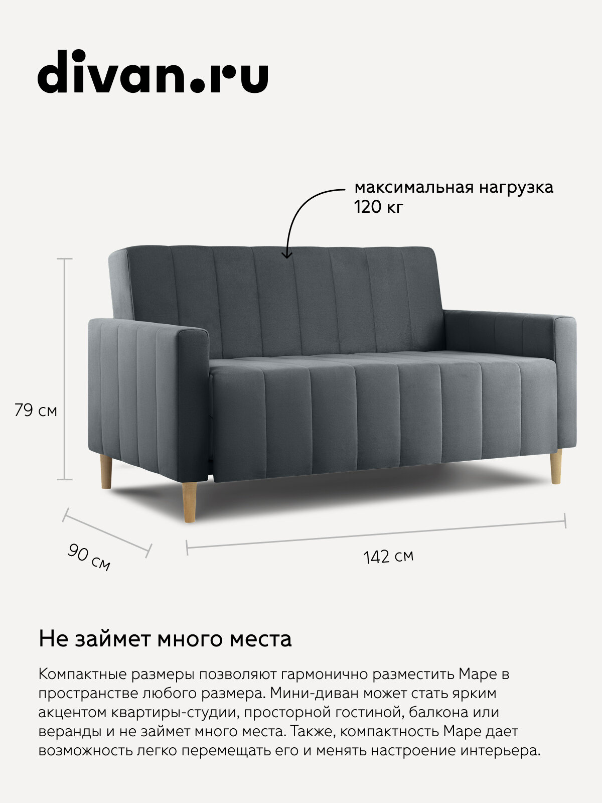 Диван-кровать раскладной Divan.ru Маре Мини Velvet Grafit 142х90х79 см, спальное место 198х120 см, серый, велюр: сравнение цен, характеристики, фото, актуальное наличие и цены.