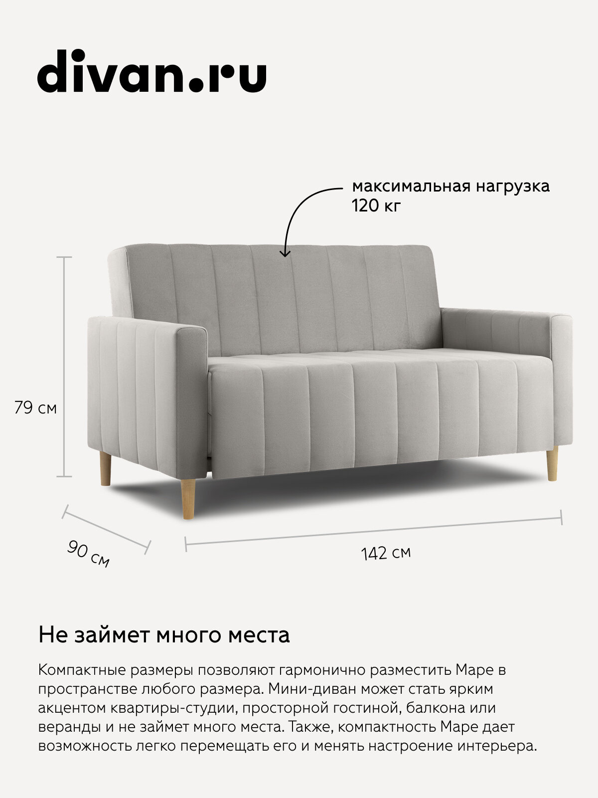 Диван-кровать раскладной Divan.ru Маре Мини Velvet Silver 142х90х79 см, спальное место 198х120 см, светло-серый, велюр: сравнение цен, характеристики, фото, актуальное наличие и цены.