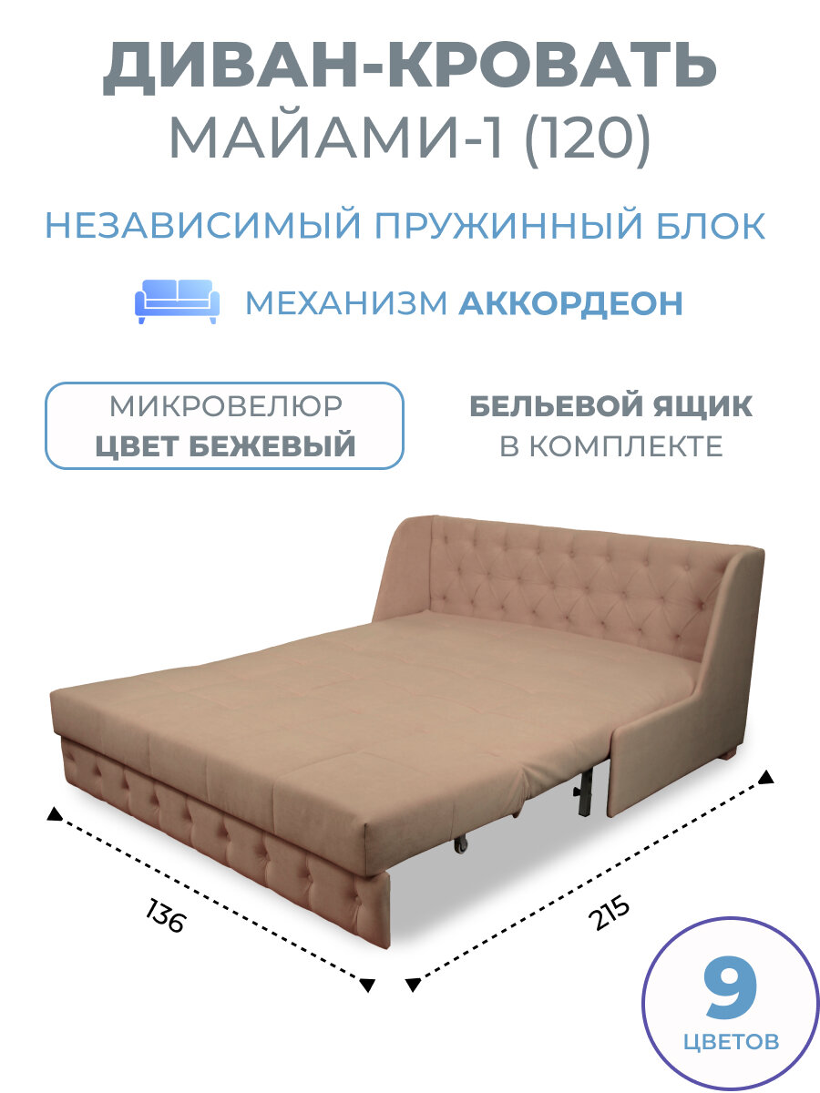 Диван кровать раскладной Майами-1 (120) независимый пружинный блок аккордеон велюр бежевый Grand Family: сравнение цен, характеристики, фото, актуальное наличие и цены.