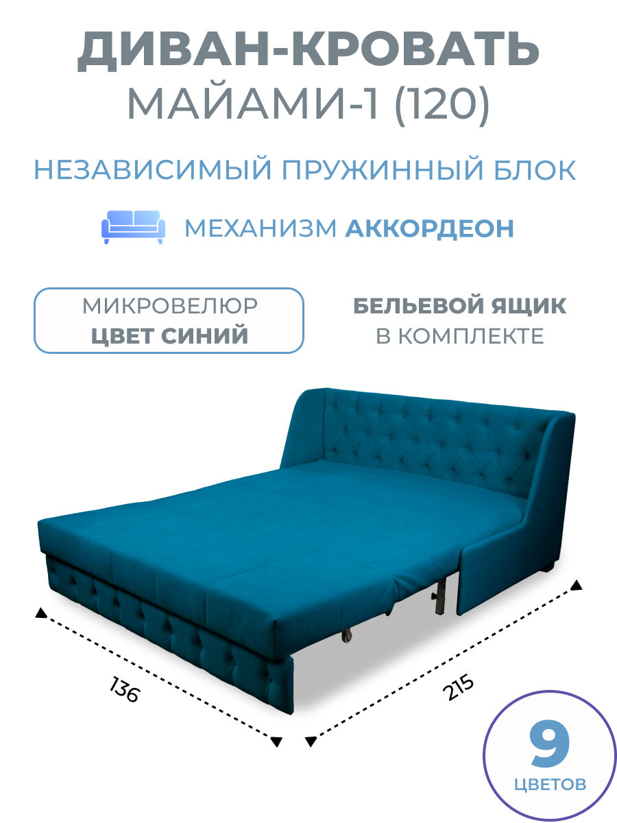 Диван кровать раскладной Майами-1 (120) независимый пружинный блок аккордеон велюр темно-синий Grand Family: сравнение цен, характеристики, фото, актуальное наличие и цены.