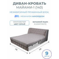 Диван кровать раскладной Майами-1 (140) независимый пружинный блок аккордеон велюр светло-серый Grand Family: сравнение цен, характеристики, фото, актуальное наличие и цены.