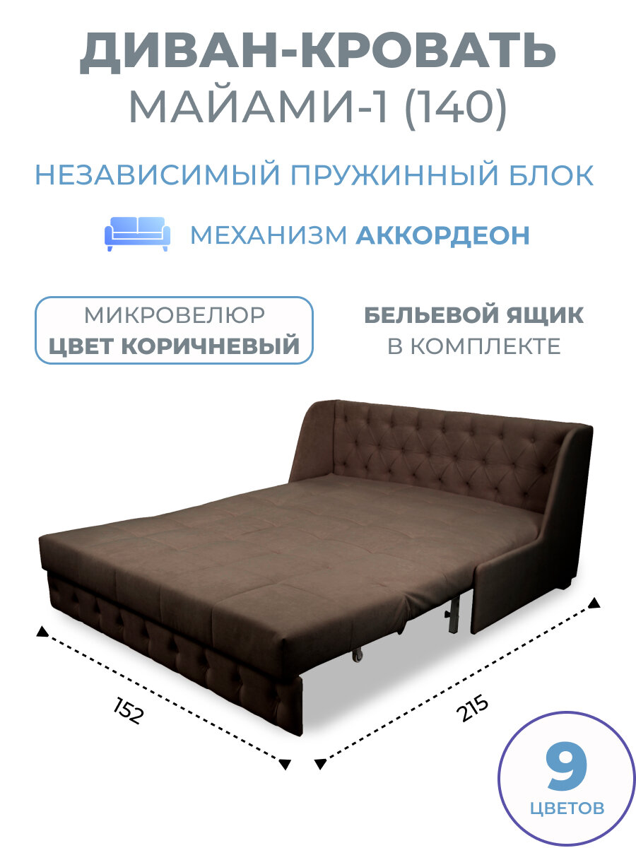 Диван кровать раскладной Майами-1 (140) независимый пружинный блок аккордеон велюр темно-коричневый Grand Family: сравнение цен, характеристики, фото, актуальное наличие и цены.