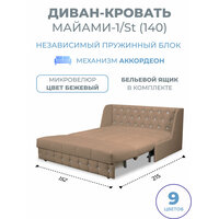Диван кровать раскладной Майами-1/St (140) независимый пружинный блок аккордеон велюр бежевый со стразами Grand Family: сравнение цен, характеристики, фото, актуальное наличие и цены.
