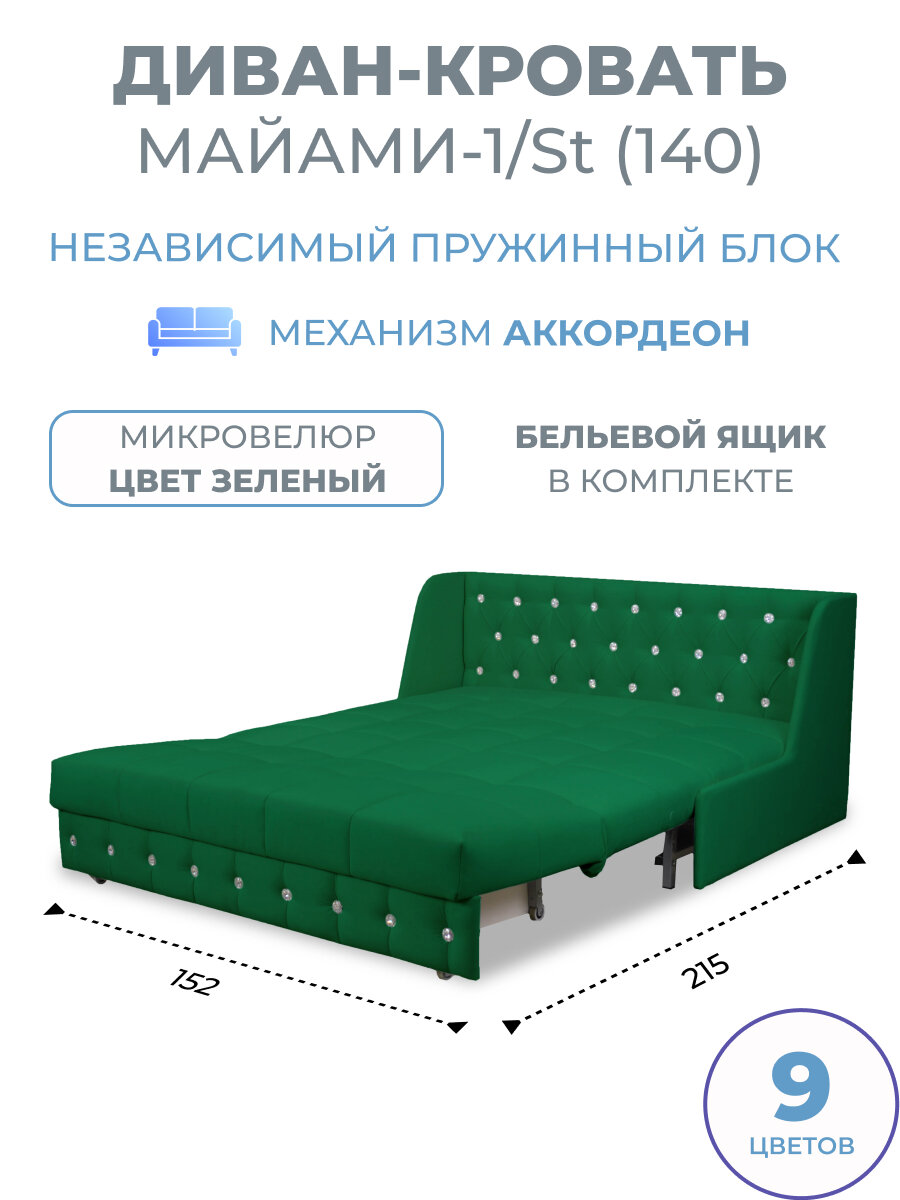 Диван кровать раскладной Майами-1/St (140) независимый пружинный блок аккордеон велюр темно-зеленый стразы Grand Family: сравнение цен, характеристики, фото, актуальное наличие и цены.