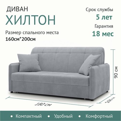 Диван-кровать раскладной Прямой на металлокаркасе, Аккордеон, 160х200 спальное место, Хилтон Светло Серый: сравнение цен, характеристики, фото, актуальное наличие и цены.